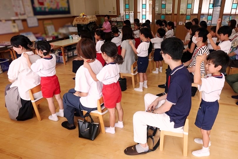 満3歳クラスでは、親子ダンスのお稽古をしました。