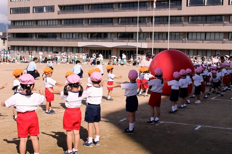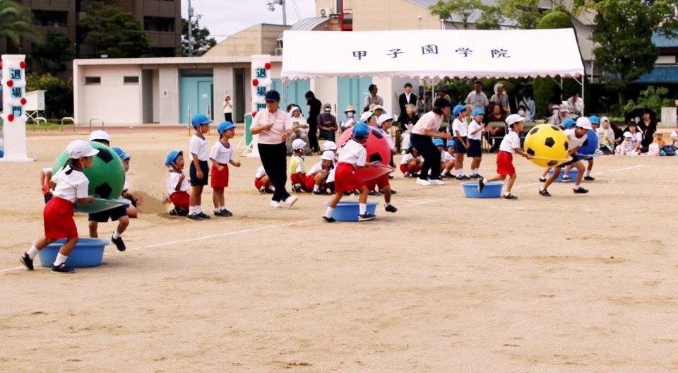 大玉転がしや応援合戦など幼稚園と小学校合同の競技も力を合わせて頑張りましたね。
