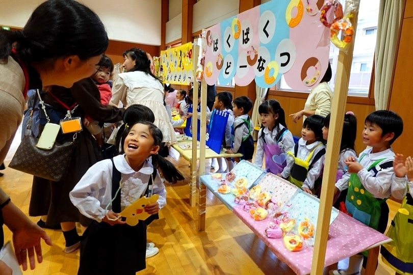 今日のおみせやさんは、年少組とことり組とその保護者の方がお客様です。