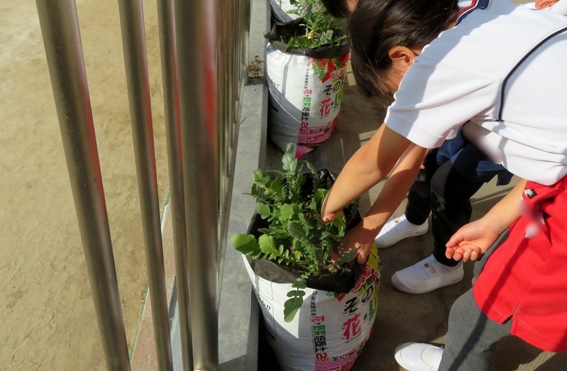 「葉っぱが大きくなってきたね」と収穫を楽しみにしていた子どもたち。